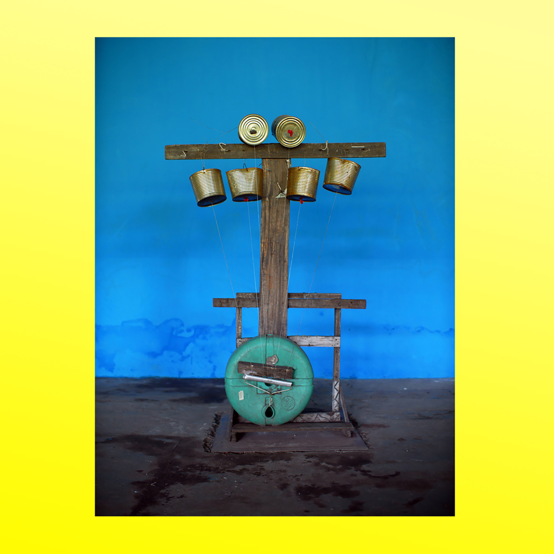 KOKOKO! member Dido Oweke built the “Jesus Crisis” bass harp in 2016.