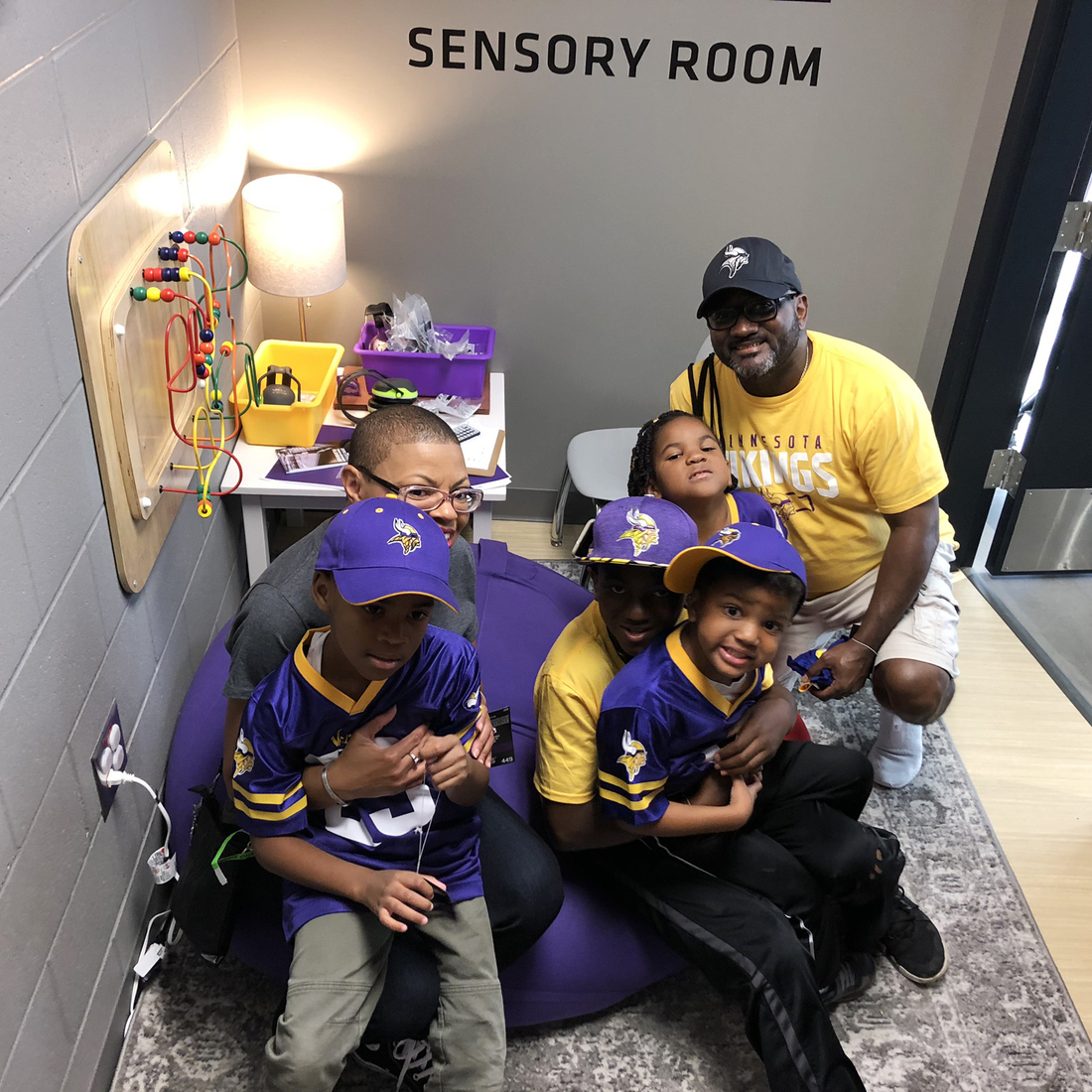 Sheletta and Shawn Brundidge, alongside their four children, were the first fans to use the sensory room at the Minnesota Vikings’ U.S. Bank Stadium. Opened during the August pre-season, the space comes with trained therapists and provides fans, including those with autism, a break from the excitement of the game.