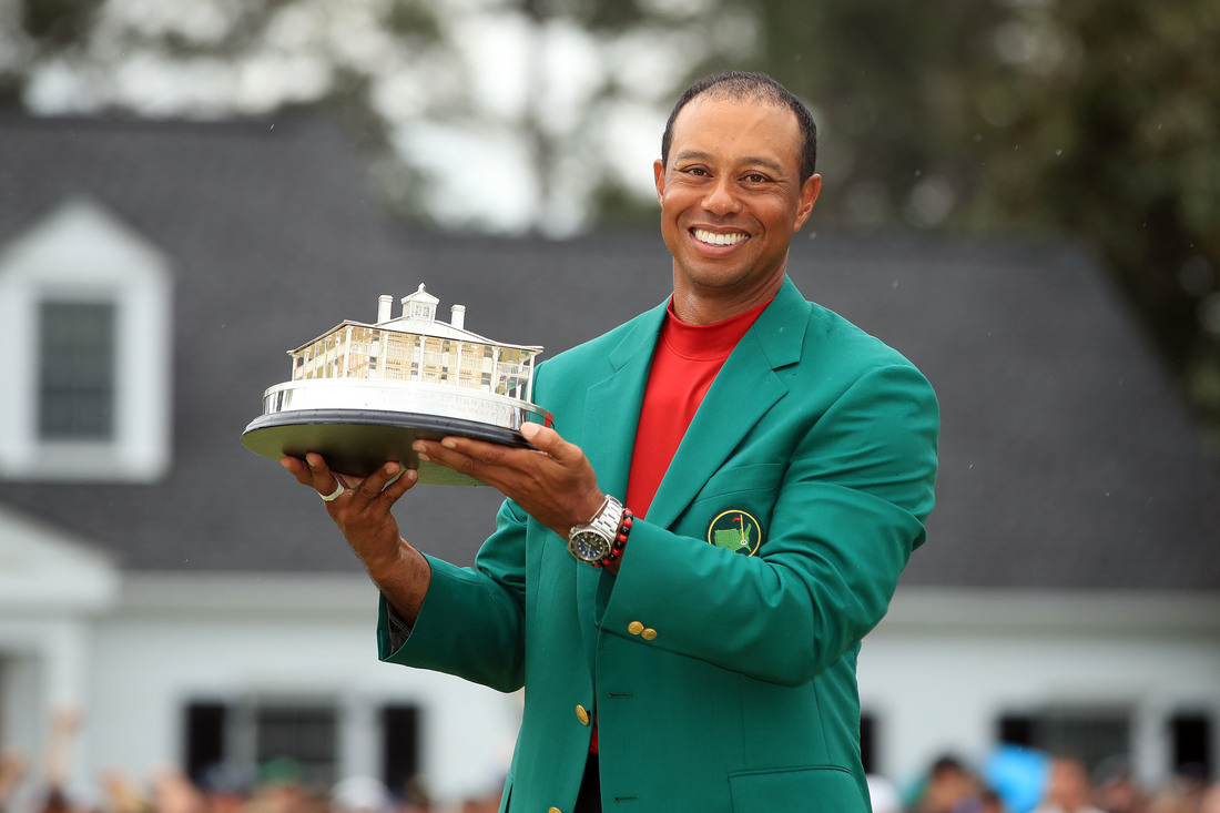 Tiger Woods with the Masters trophy after winning the Masters at Augusta National Golf Club on April 14, 2019 in Augusta, Ga.